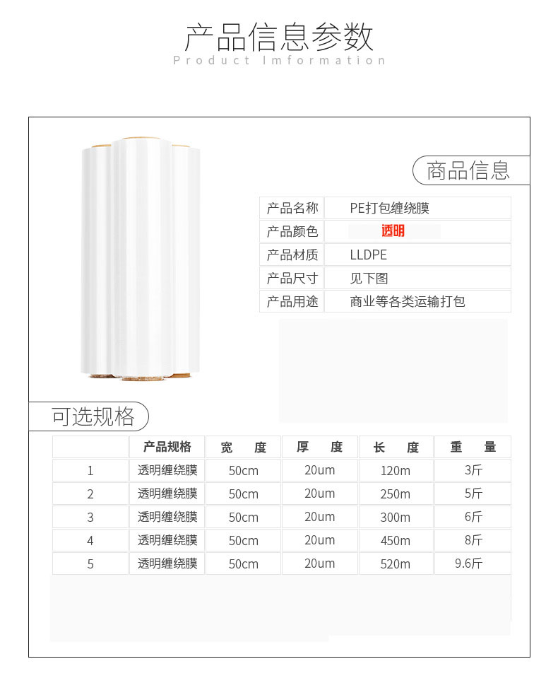 手工纏繞只需一個(gè)帶阻尼制動(dòng)的手持放卷架,一人手持環(huán)繞包裹,輕便靈活,因地制宜。產(chǎn)品優(yōu)點(diǎn): 1、 使用雙層共擠設(shè)備,壓制出的纏繞膜能最大限度地發(fā)揮所有的每一種聚合物的特性,其透明度、抗拉強(qiáng)度、抗穿孔強(qiáng)度,達(dá)到熔點(diǎn)時(shí)的最優(yōu)狀態(tài)。 2、 具有拉伸性能好、透明度好、厚度均勻。 3、 有縱向延伸性、回彈力好、橫向抗撕性能好、自粘搭接性優(yōu)良。 4、 是環(huán)保可回收材料,無味、無毒、可直接包裝食品。 5、 可制造單面粘性的產(chǎn)品,減輕纏繞拉伸過程中發(fā)出的噪聲,減少運(yùn)輸、貯藏過程中灰塵、沙粒。 6、 產(chǎn)品規(guī)格可以在150MM-1000MM之間任意分切寬度